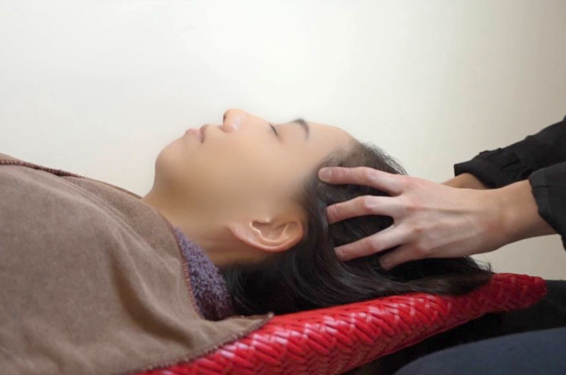 頭皮を丁寧にほぐし、首と肩の緊張を解き、デコルテを優しくケアする。
